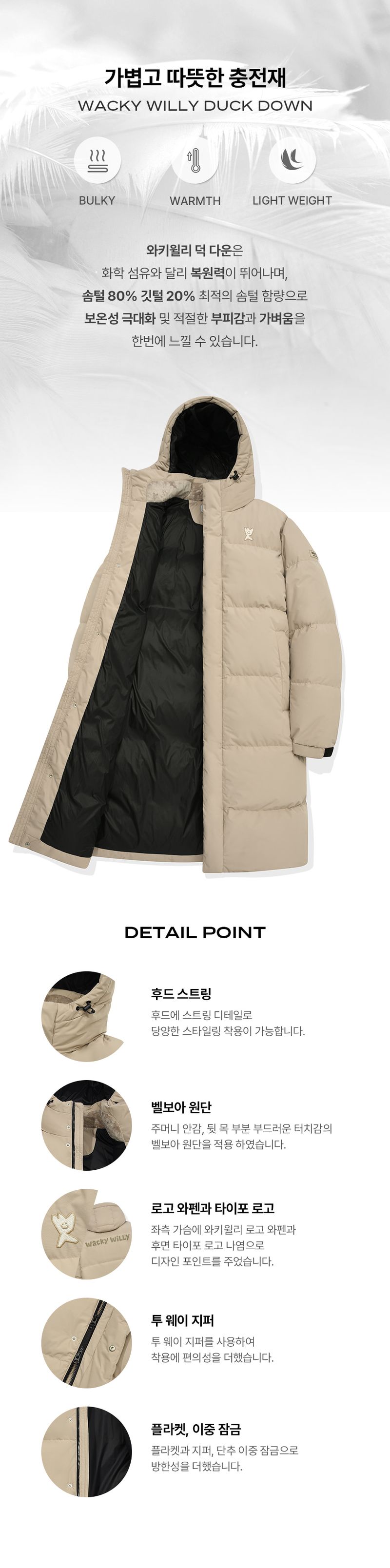 韓國直送 WACKY WILLY - Logo Wappen Hood Long Down Jumper Beige