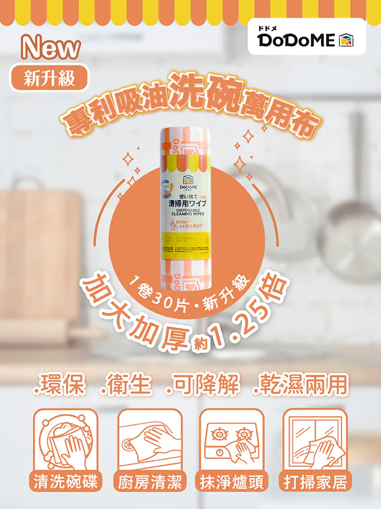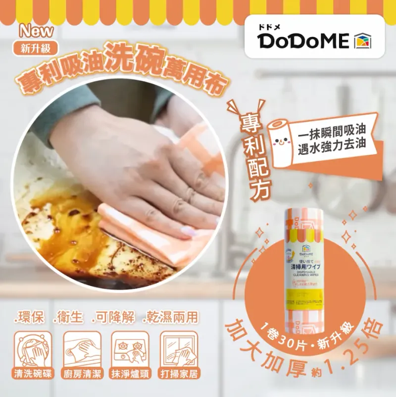 DoDoME 新升級專利除油洗碗萬用布(可降解) 30片 | 1卷