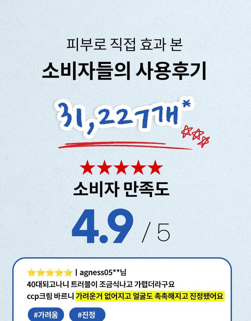 韓國 Olive Young 特別優惠套裝 - Ibodle CCP Cream 乳霜 50ml 不要抓癢的地方。改為塗抹止癢霜。 僅需兩週即可減少皮膚搔癢並恢復皮膚屏障。 改善皮膚搔癢、舒緩受損皮膚、皮膚吸收極佳,滿意度100%。 含有右泛醇,這是恢復皮膚屏障的關鍵功能成分。 含有麥冬根萃取物,保護肌膚免受外界刺激,抑制肌膚乾燥。 Ibodle獨特的CCP成分配方含有強化保濕屏障、舒緩肌膚的右泛醇、強化肌膚屏障、滋潤肌膚的神經醯胺NP、舒緩保濕肌膚的積雪草、舒緩肌膚的玉米葉萃取物。 積雪草萃取物和積雪草之間的協同作用可舒緩敏感肌膚,而玉米皮萃取物則可最大程度地減少皮膚搔癢。 如何使用 取適量,輕輕塗抹於整個臉部或需要注意的部位。 【備註】 產品需要訂購,到貨日期需要按照官方發貨時序而定,預計需要大約10-20工作天左右到貨,實際到貨日期仍然需要依據官方發貨而定。 產品有機會因為官方缺貨而無法訂購,如果遇到缺貨或停產,我們會聯絡你安排退款。 聲明:本公司並沒持有任何品牌之版權。所有商標及版權均屬該品牌持有人,圖片及資料轉載只作分享用途,敬請留意。 |
