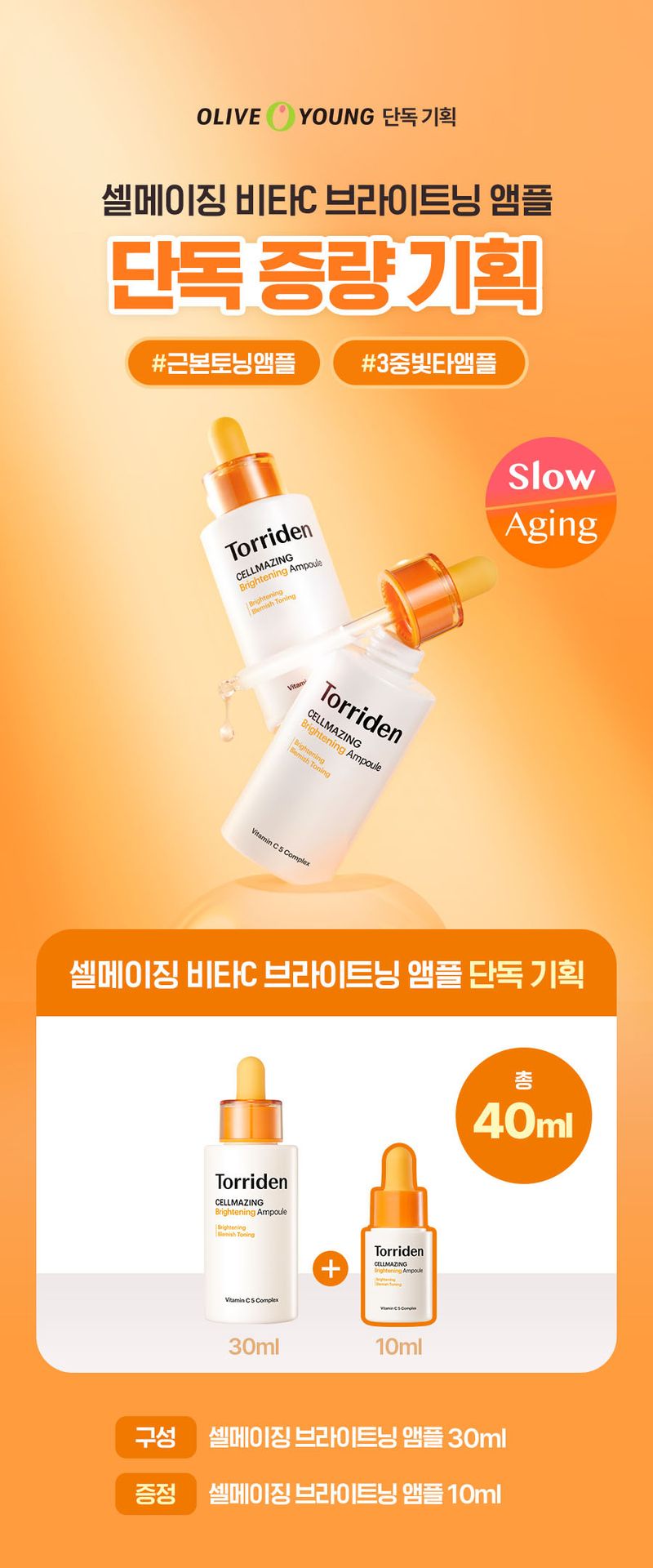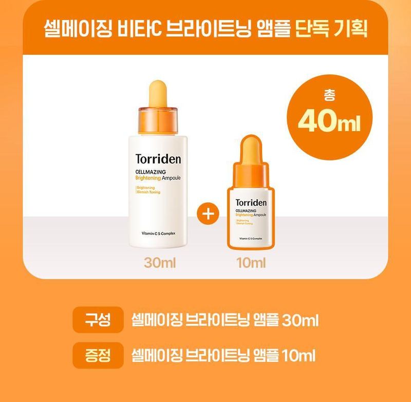 (24.10.01 ~ 24.11.30) 韓國 Olive Young 特別優惠套裝 - Torriden Cellmazing Vita C Brightening Ampoule 維他命C提亮美白去瑕疵煥膚精華 30ml (+額10ml*1 & 2ml*5ea)